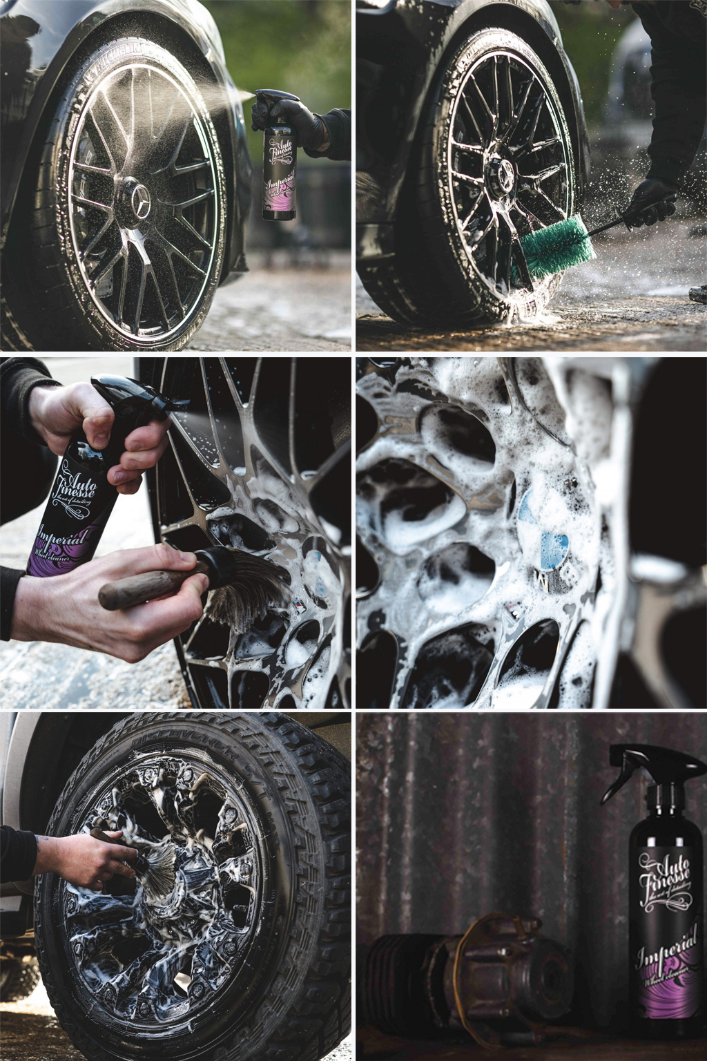 Sau khi rửa mâm bằng Imperial mà vẫn còn bụi sắt, bạn hãy sử dụng chai Iron Out, hoặc nếu dính nhựa đường, thì dùng thêm OpliTARate, để giúp cho mâm xe thêm sáng bóng và sạch sẽ hơn.